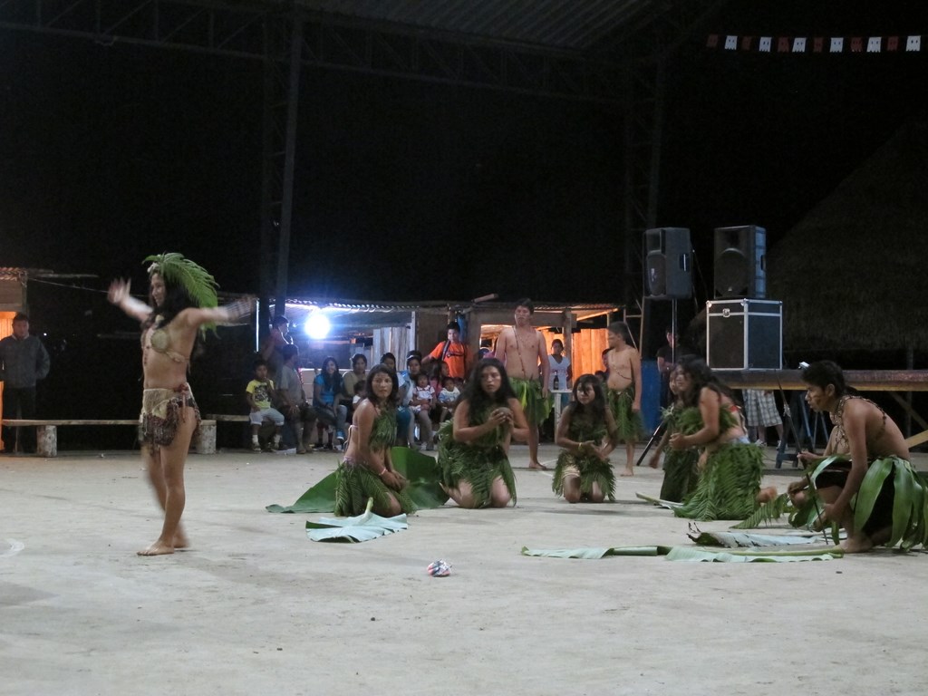 Le samedi, un grand concours de danses et de chants traditionnels a eu lieu sur la scène installée pour l’occasion. Le concours de danse kichwa a épaté tous les spectateurs par ses chorégraphies, ses mises en scène recherchées et ses costumes. Ceux-ci ont été conçus par les danseurs à partir de matériaux traditionnels.